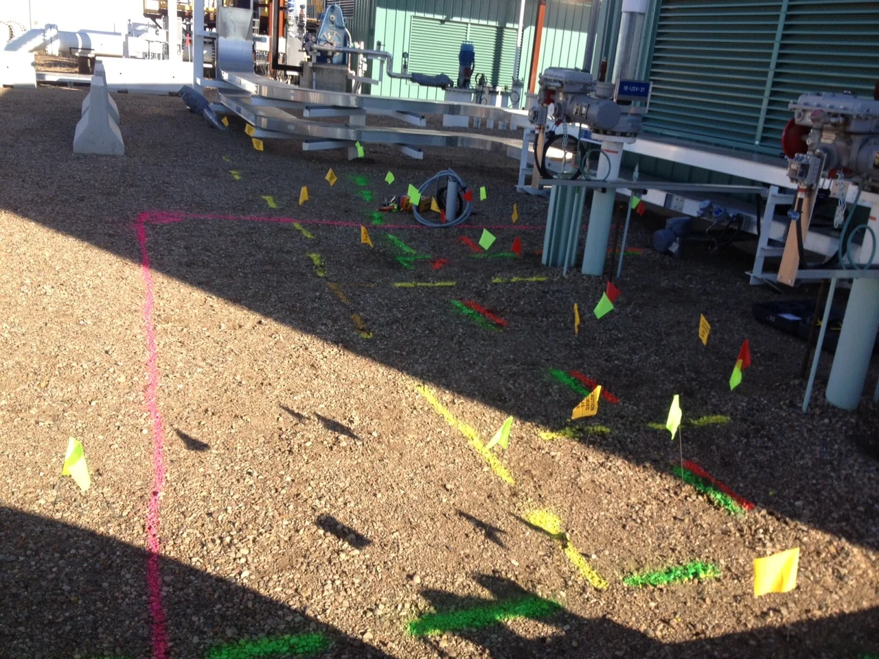 Gas compressor sites are a common place we find ourselves locating, and mapping buried lines.
