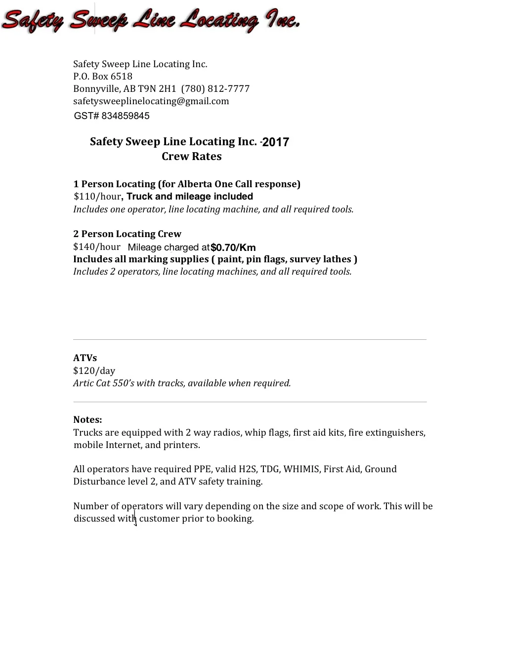 Safety Sweep Line Locating 780-812-7777 Bonnyville, AB